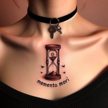 The hourglass is a direct symbol of time slipping away. Small grains show how time flows and embrace the end. Besides, you can also see it as a sign of a new beginning at the other end. You can also add cracked glass or fading sand as a creative touch to the memento mori tattoo.